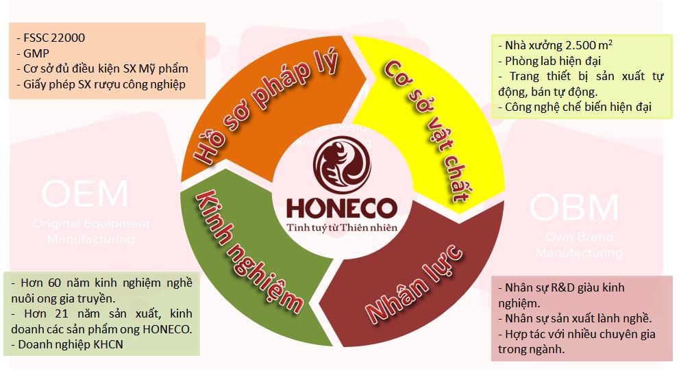 – Honeco có kinh nghiệm hơn 21 năm trong nghiên cứu, sản xuất thực phẩm, chúng tôi có hệ thống các nhà cung cấp nguyên liệu, phụ liệu, bao bì…. chất lượng, nhanh chóng phối hợp để hoàn thiện sản phẩm cho bạn.